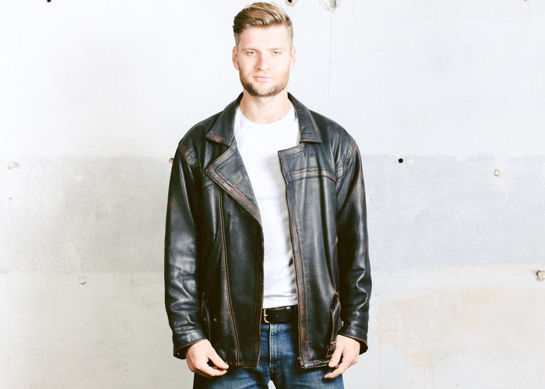 80s Leather Jacket Men Vintage 1980s Jacket Rugged Jacket Etsy India